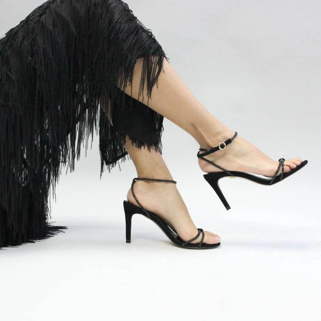 Eloise es nuestra nueva sandalia de tubos delicados de cristales, icono de nuestra colección limitada GLAM. Sus tiras abrazan y se ajustan perfectamente al pie, decorando e iluminándolo de forma elegante y sofisticada.