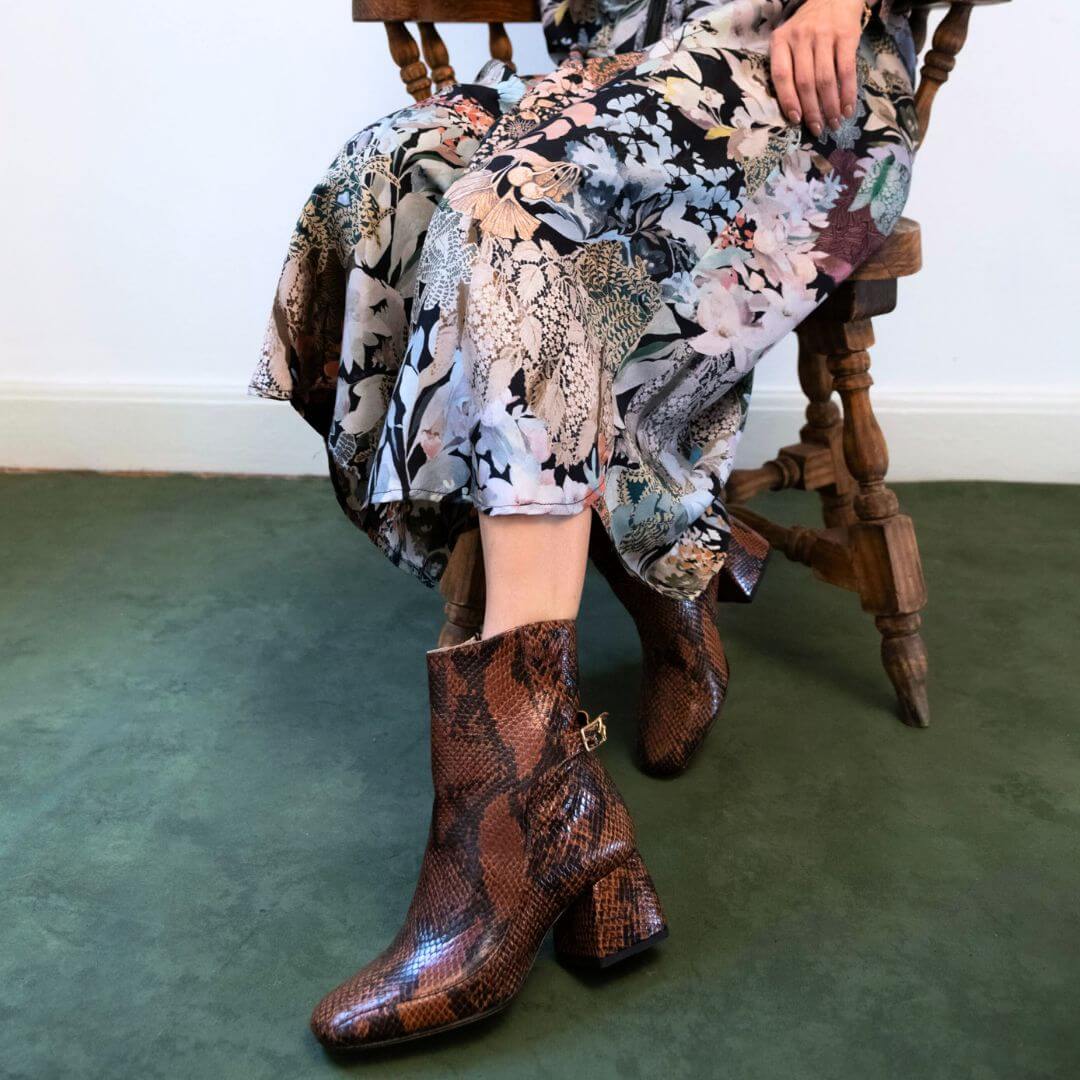 Su tacón de bloque asegura estabilidad y confort, permitiendo llevarlo durante todo el día sin comprometer el estilo. La caña envolvente abraza el tobillo con líneas limpias, logrando una presencia refinada que se adapta con facilidad a diferentes conjuntos.